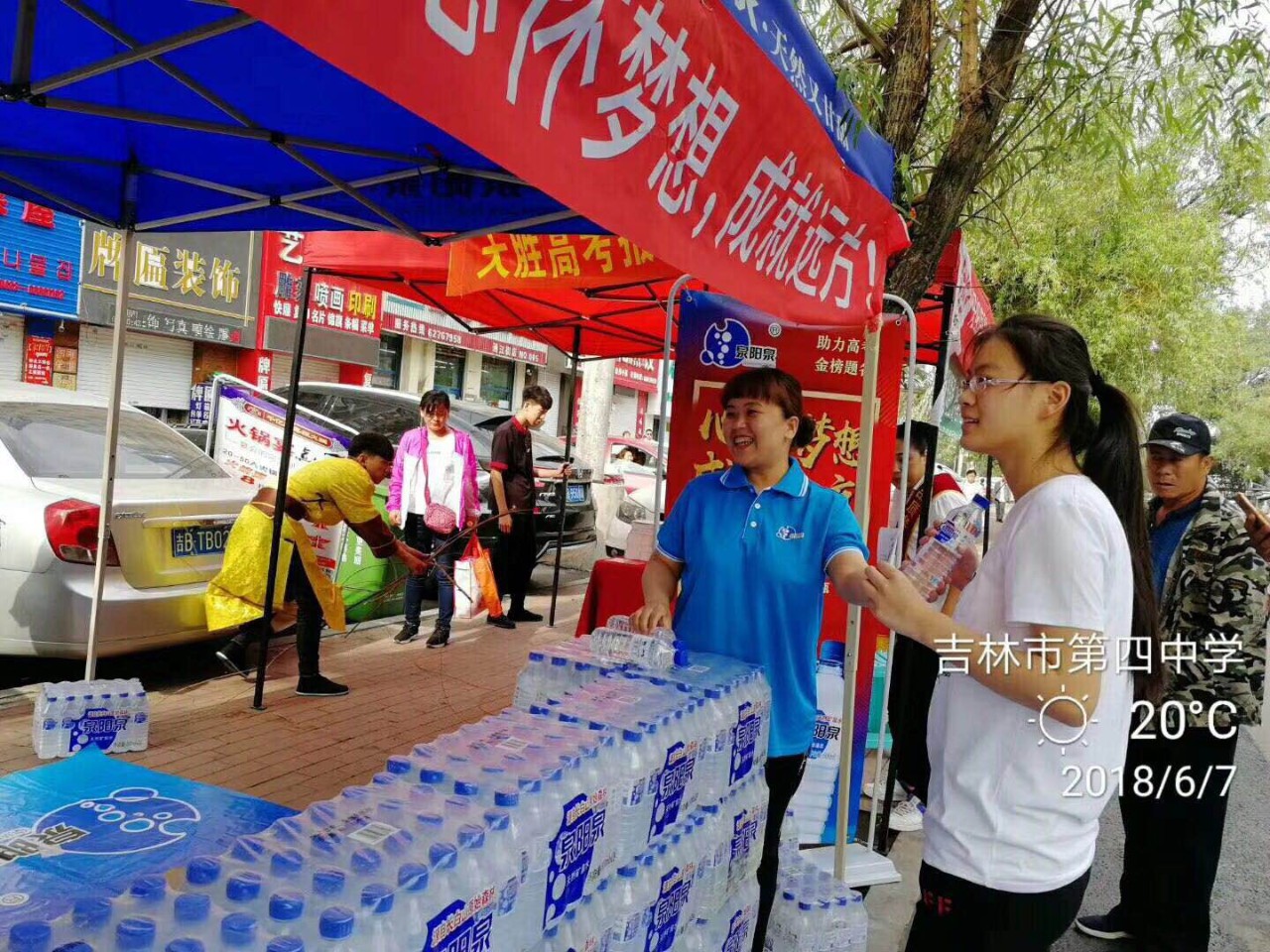 ? ? ? 高考不止是考生的高考,也是家長(zhǎng)的高考,家長(zhǎng)所經(jīng)受的辛苦和壓力絲毫不亞于考生,除了凜冽甘甜的泉陽(yáng)泉天然礦泉水,泉陽(yáng)泉同時(shí)為家長(zhǎng)們提供了遮陽(yáng)、遮雨的帳篷,希望能夠一起度過(guò)這酷暑的兩天,送去清涼為考生及家長(zhǎng)做些力所能及的事。
